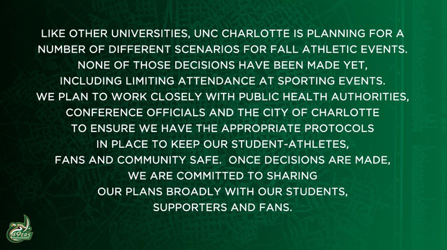 I agreed with some previously expressed comments (may have been in the SB), that the decisions we end up making are likely bound by those of the conference, the UNC System, and the State in conjunction with public health officials. I doubt Dubois, Hill or Gaber really gets to make this call, but they will have to figure out how to execute the decisions.