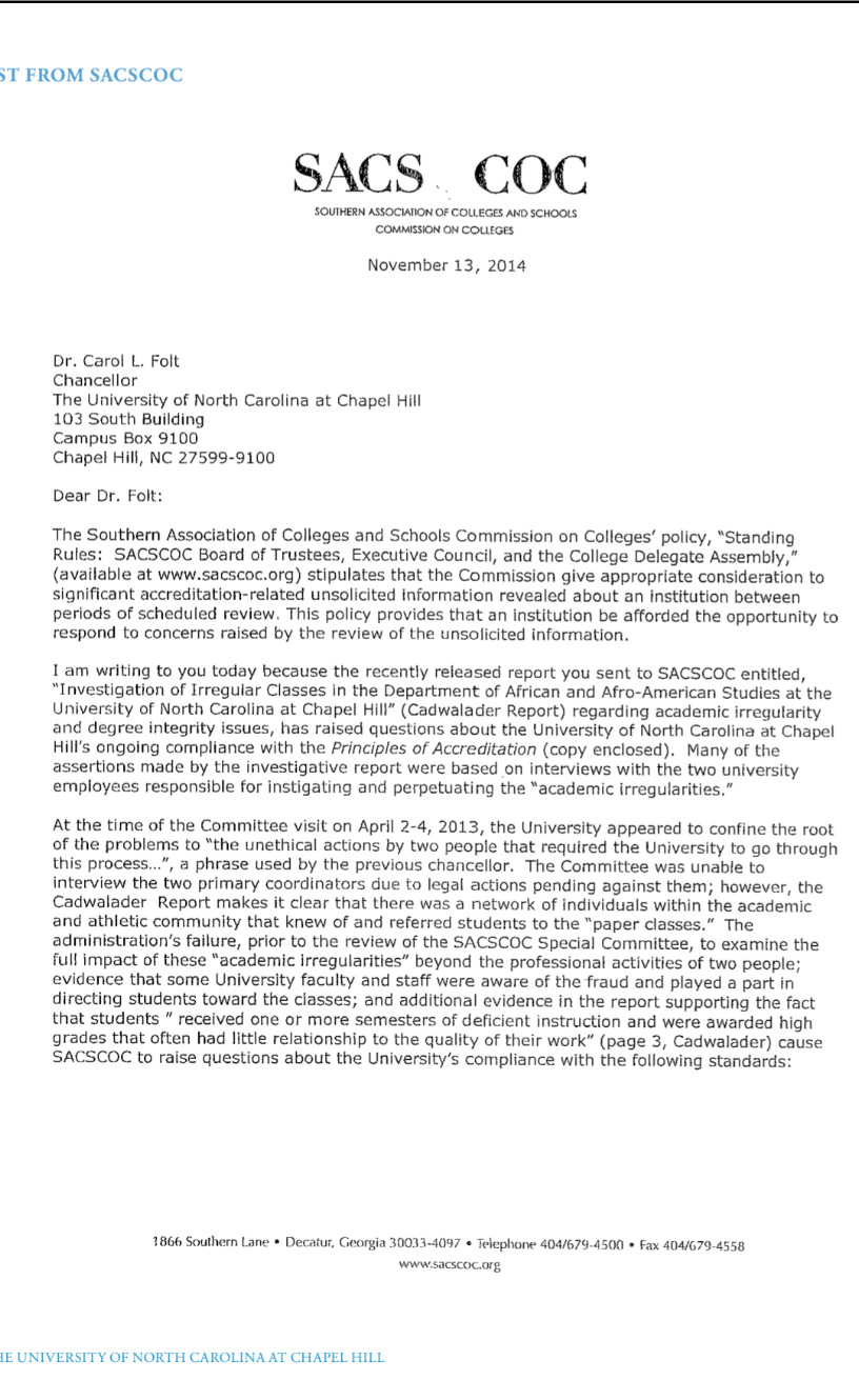 Huh? Even Chapel Hill itself does not deny the fake classes, only maintaining that they weren’t available exclusively to athletes.