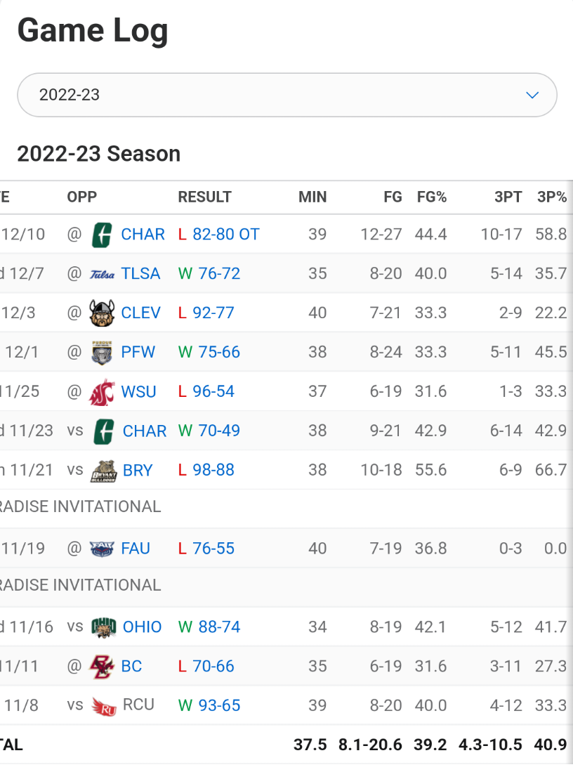 Losing to Detroit Mercy or any other Horizon league team should always be considered a bad loss, especially a 21 point blowout, we are heading into the AAC next year and our standards should be significantly elevated, our litmus test for success is NOT Detroit Mercy or any other Horizon league team, we will measure our success on how competitive we are against the top echelon in our conference this year ( Florida Atlantic, UAB, Middle Tenn St, Western Kentucky, North Texas, and LA Tech ) and future AAC powers next year and beyond