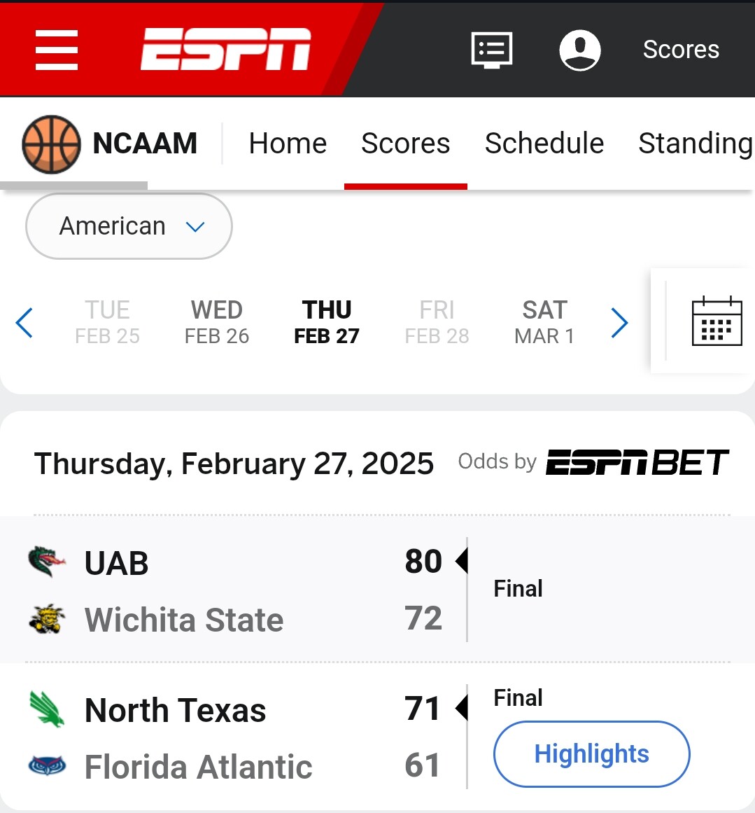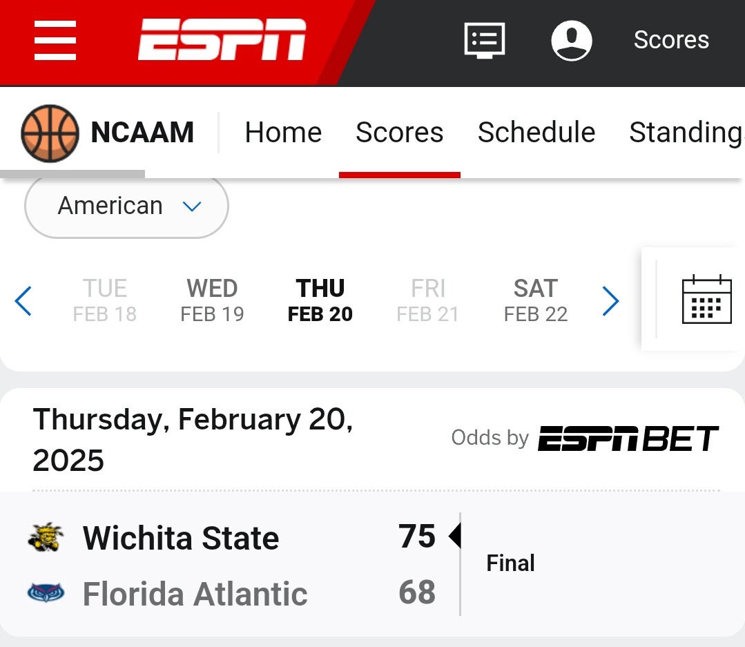 Get the impression that FAU was looking ahead to their game with Memphis on Sunday. A win over a resurgent Wichita State would have solidified fourth place for the Boca Owls with the AAC tourney just 2 1/2 weeks away. Instead FAU finds themselves in 5th and on the wrong side of the cut line for a first round bye in Fort Worth.