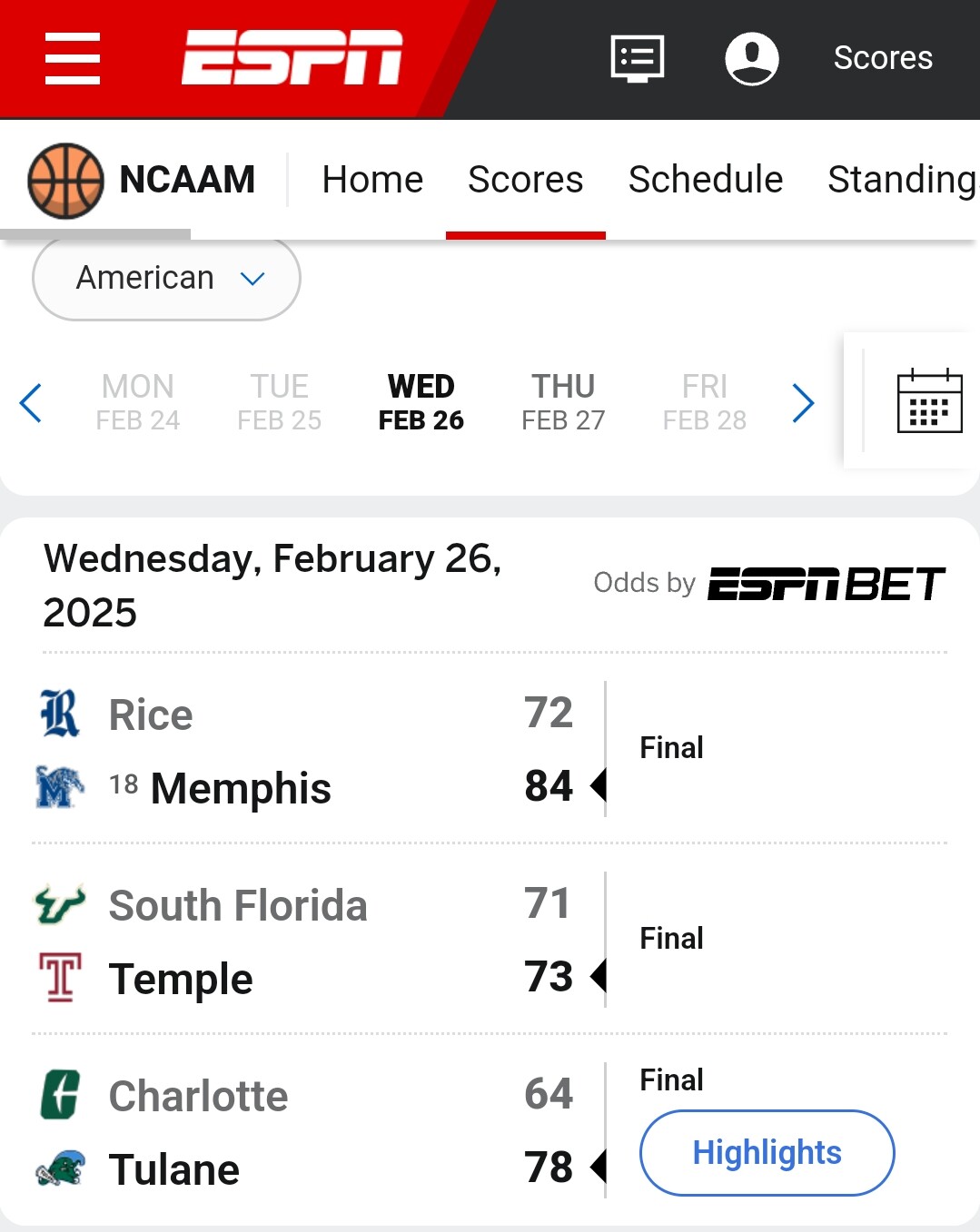 Not sure that I agree completely with Rocco but no doubt that after Memphis itโs North Texas and no one else.