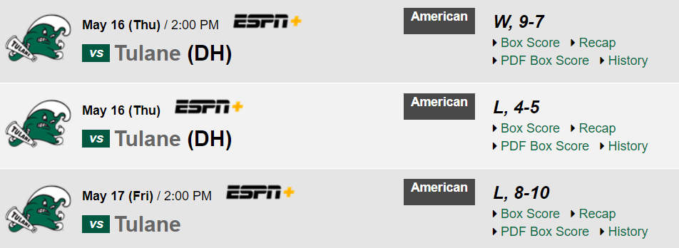We just recently hosted Tulane at the Hayes and lost the series 1-2. Both teams will be very familiar.