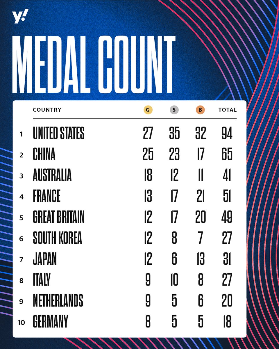 Medal count thru August 7th: