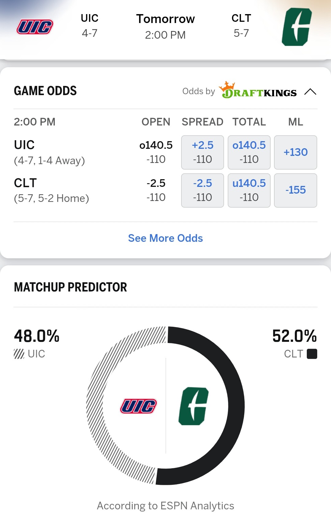 FWIW, I’m one off on my OOC predictions so far, which match actual results except for Davidson. Figured we’d be 6–6 instead of 5-7. Do have UIC as a W.
