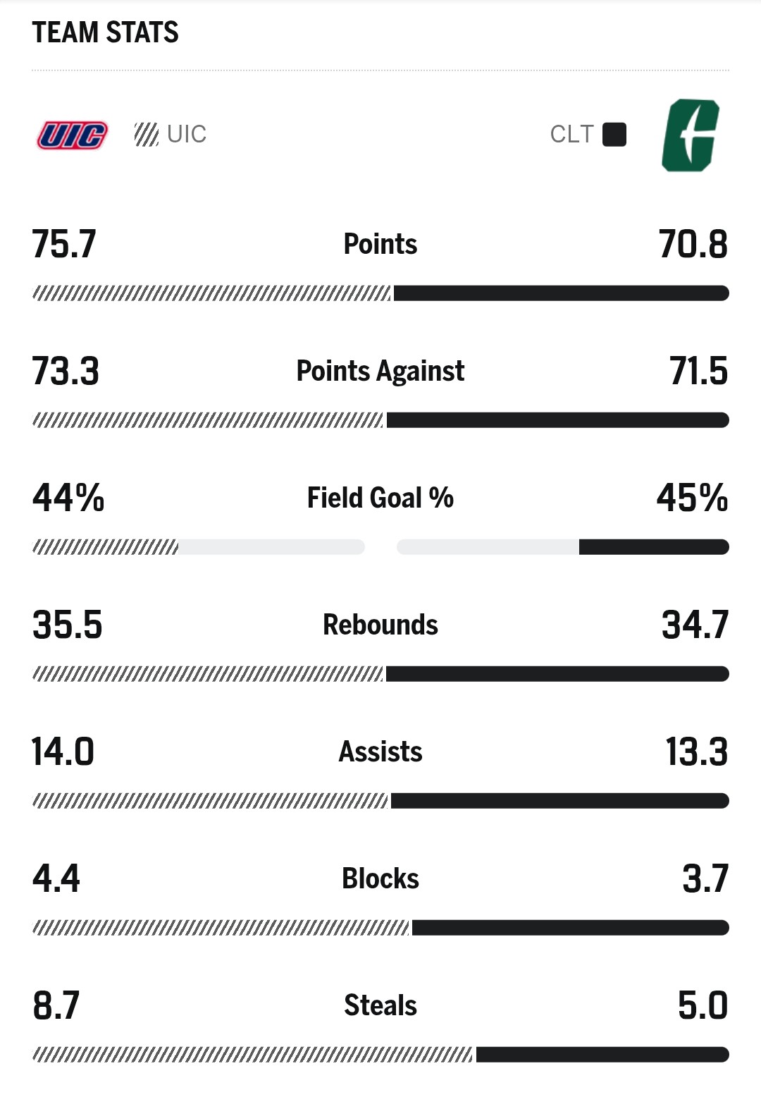UIC’s most recent games - against a couple of Missouri Valley heavyweights - were pretty competitive. An 87-84 loss at #49 Belmont (12-1) and a 60-54 setback at home to #86 Northern Iowa (9-2).