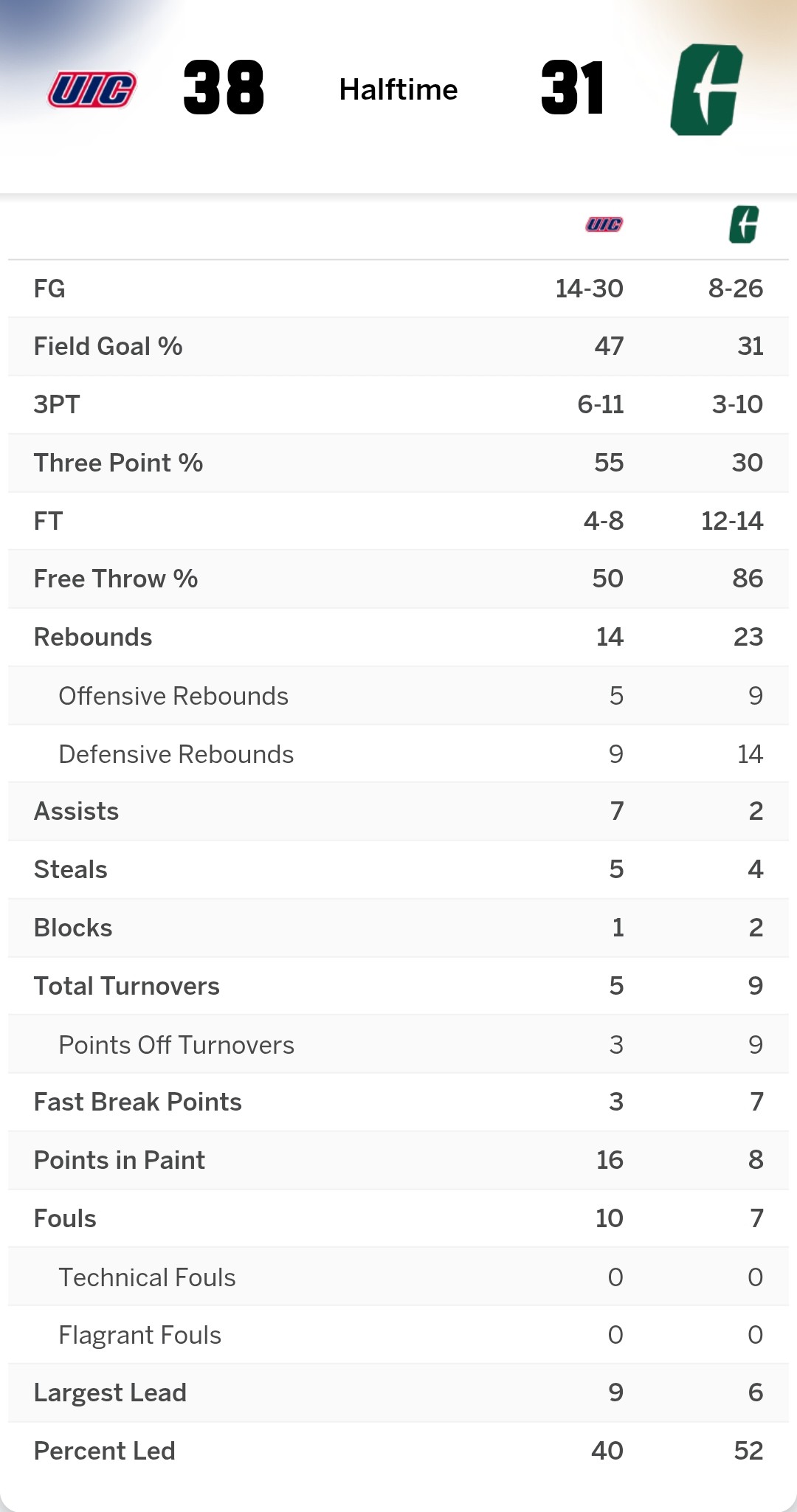 I agree with what most have just said. Iām uncomfortable with Mingoās āone on oneā type offense, but he found open guys for a basket a couple key times after dribbling around forever. Maybe luck? I donāt like Mingoās defense either. I generally think we look best when Villar is in. I donāt understand how we use Bonke either. We use too many players and chemistry is hard to develop this way although the team seem to be spirited and like each other. In defense of using so many players ( in this game only ) UIC is not deep. He may have tried to wear them down with our depth? Itās a frustrating year but I could see some type of run at some point this season. Our conference is weak this year.
