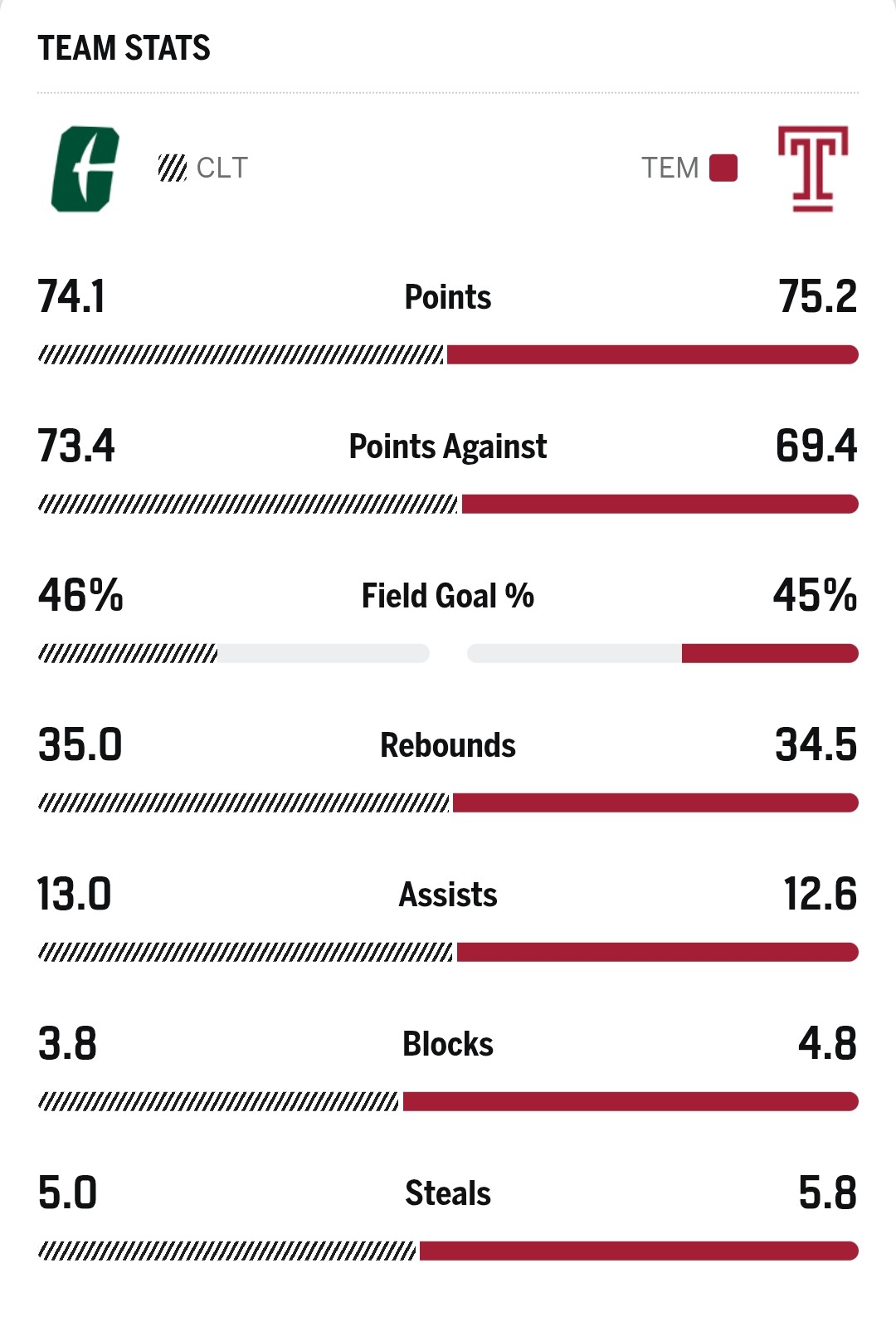 Looks like 2 extremely evenly matched teams.