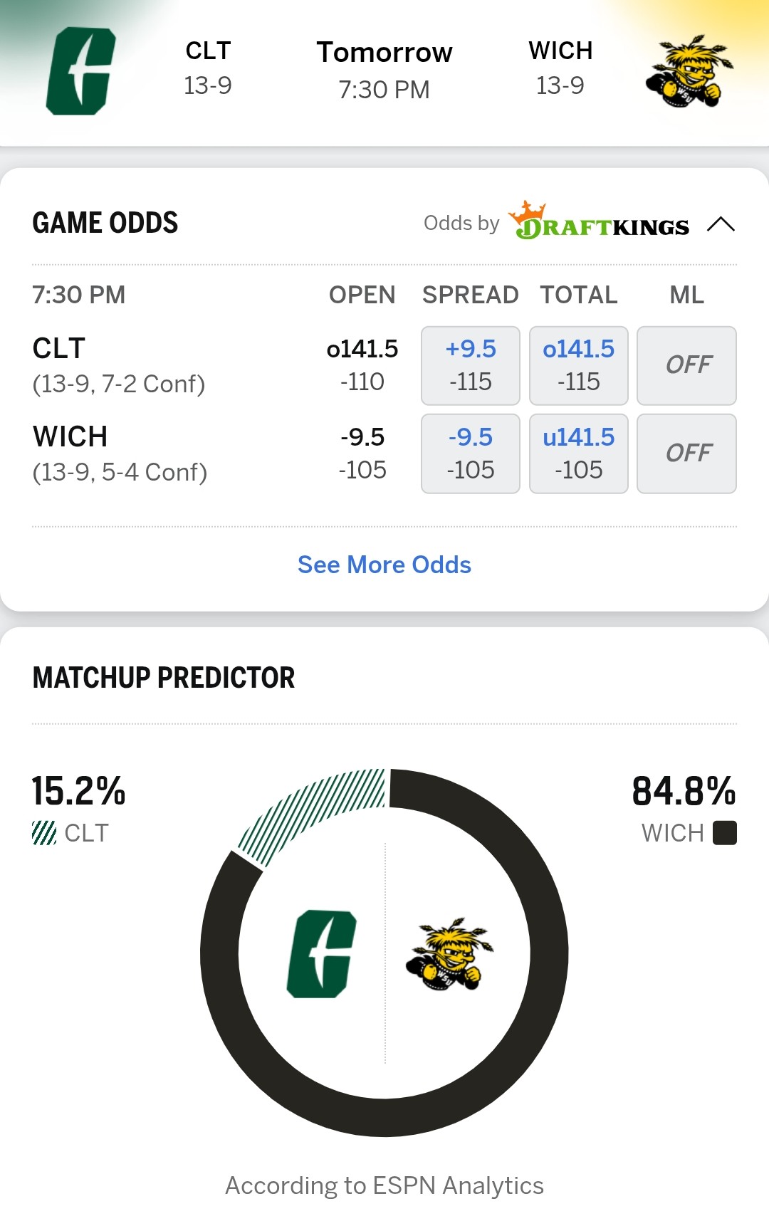 Wichita State is a tough place to play but 9.5 seems like a lot. Sweeping a team is tough but thatβs a lot of points.