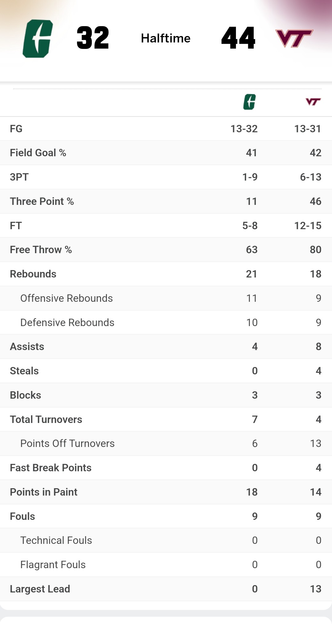 So I’m expecting to come back from break and Bonke is ejected and the foul against VA Tech is reversed.