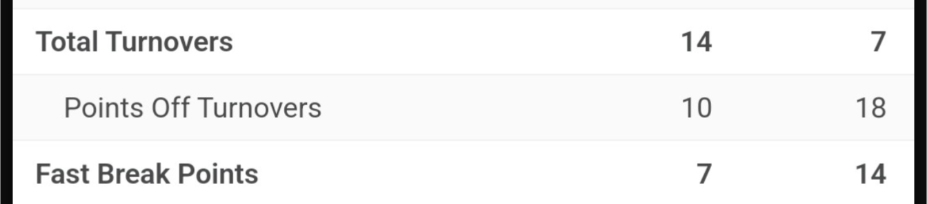 Thereās the ballgame. Could also add in about 3 or 4 crucial missed layups. Would have been a worse loss but we outshot them from 3 for the game after their red hot start.