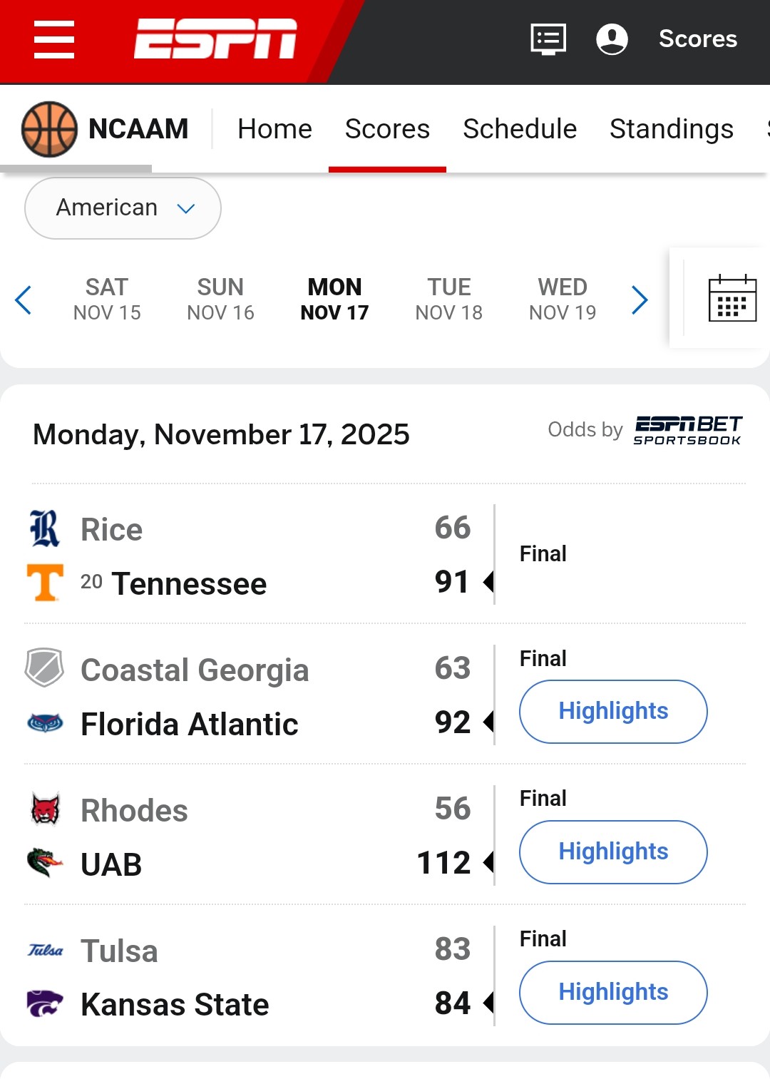 Rice just kinda hung around but Tennessee gradually expanded the lead and never was threatened.