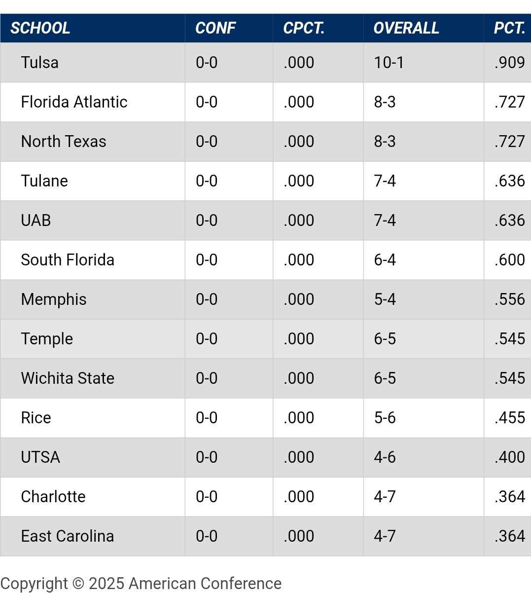 American is #10 among conferences, which places it between #9 MVC and #11 WAC.