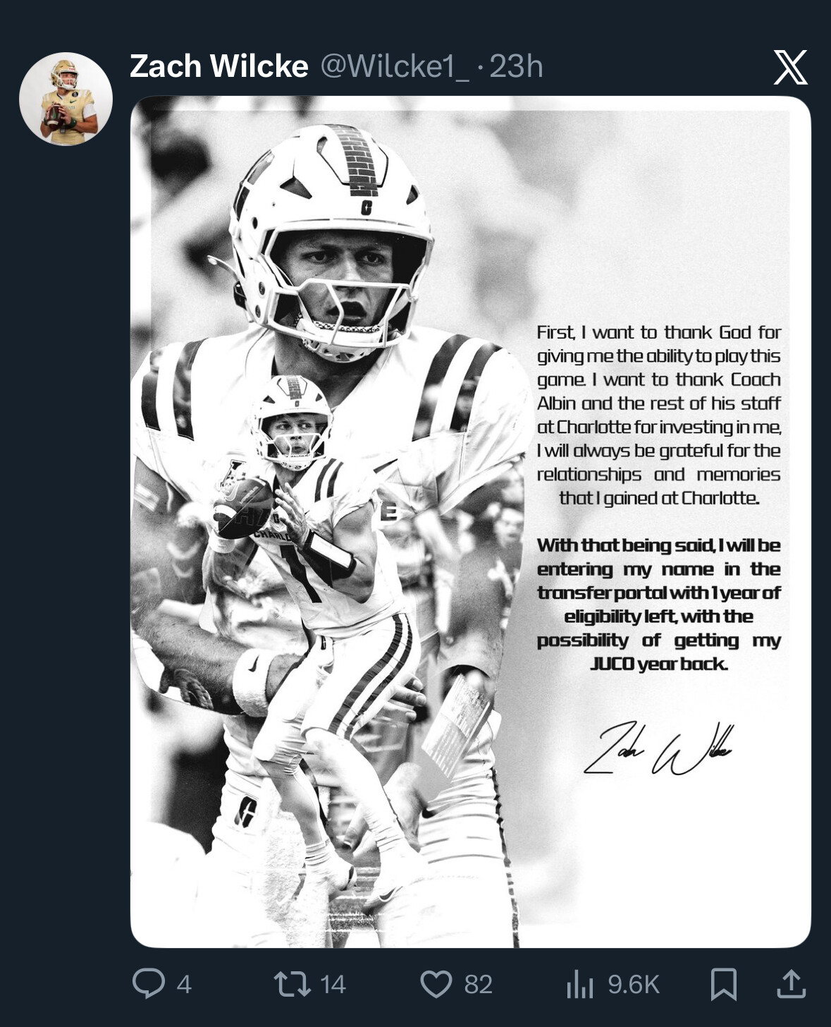 Good luck to him! Iām assuming he will drop down to FCS or D2. Good luck to him!
