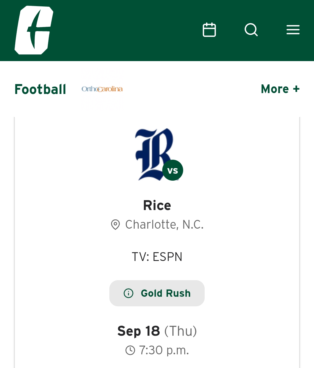 Itās a short week for Rice, too, and they do have to travel. On the other hand, they had an easier time winning, so I presume they pulled their starters early. Still, because Rice has to travel, if the short week is an advantage for anyone, itās an advantage for Charlotte. Still, short weeks suck.