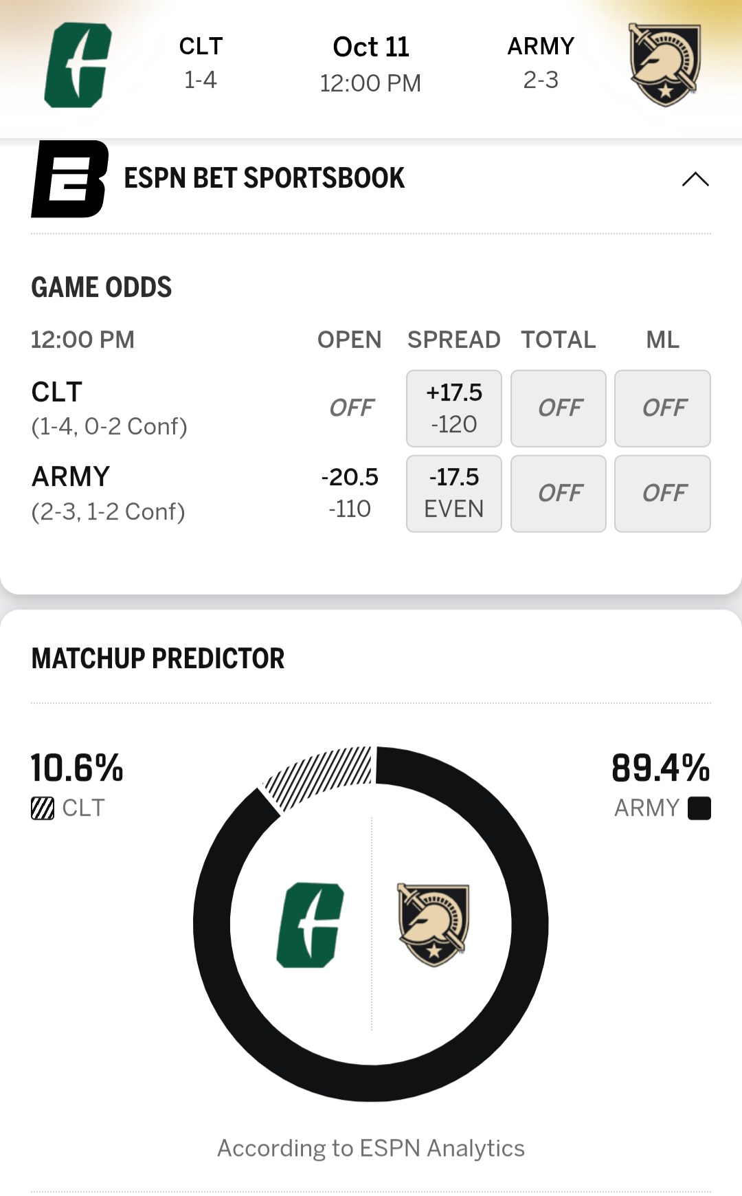 Army is having a down season. However, they are still dangerous if you can’t stop the run…