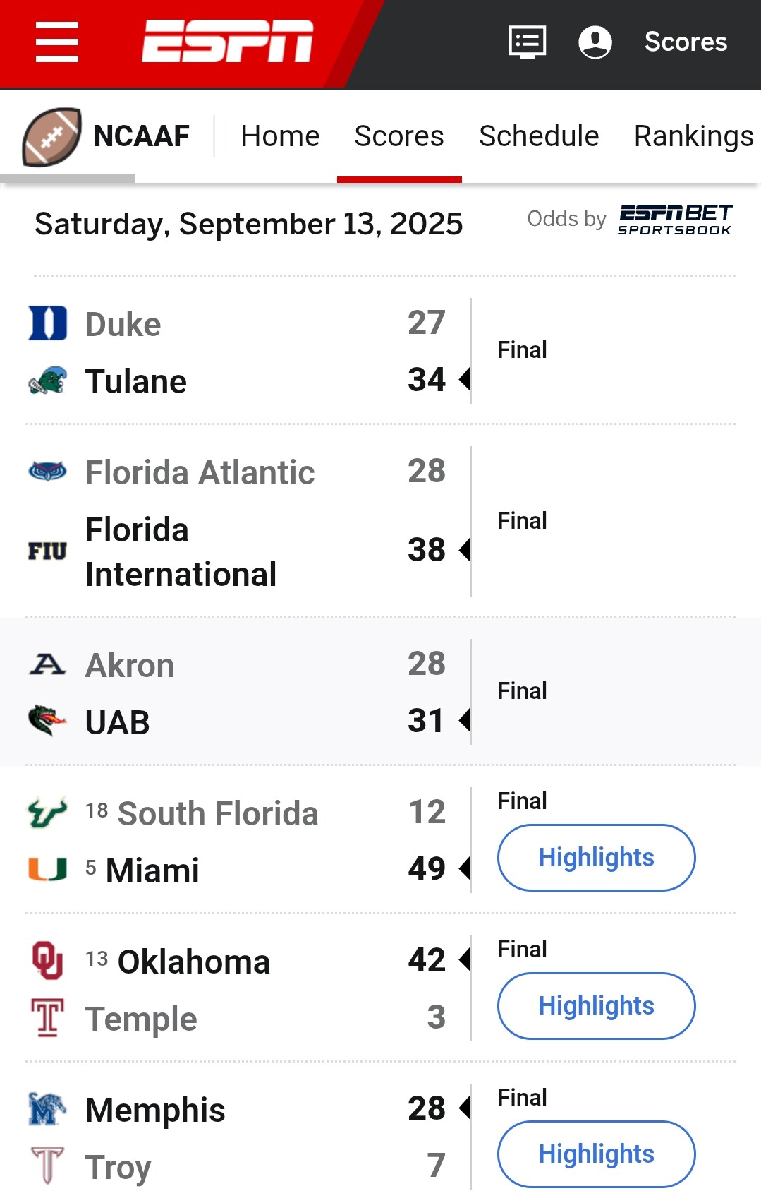 The American has a really interesting slate of games this weekend. Chance for some high quality wins. Memphis, NT, Tulane… But the biggest of course is USF vs Miami. Also still can’t believe Oklahoma is playing @ Temple.