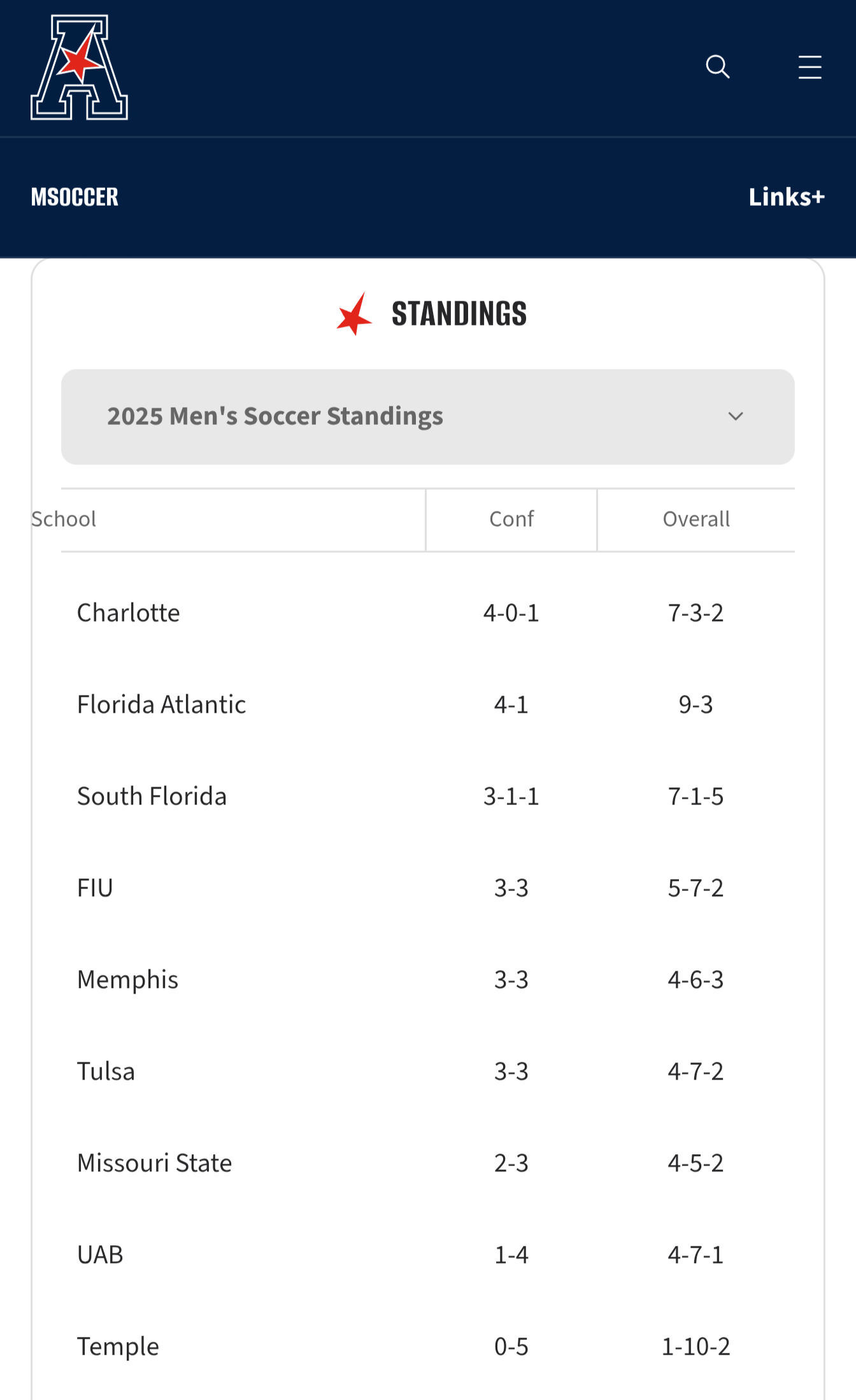 South Florida losing 1-3 at home against Mo State. Looking good for Niners to be alone at the top of the table.