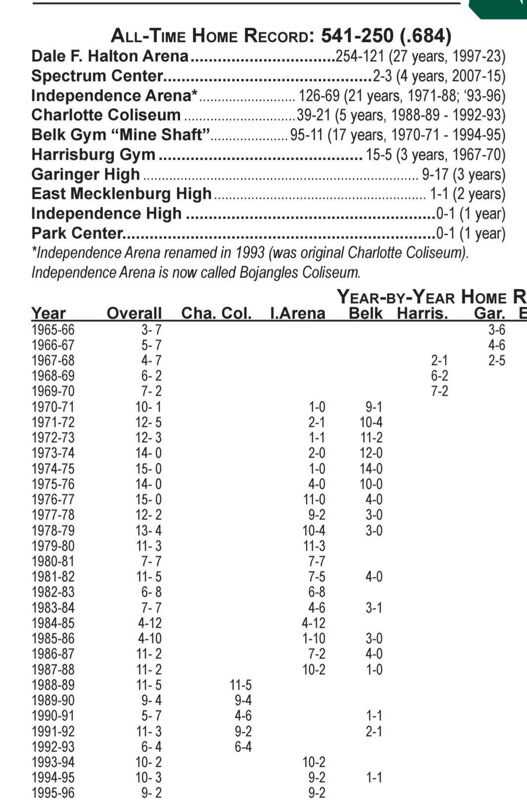 The Independence Arena was mothballed from ‘88-’93 so it wouldn’t compete against the Tyvola Coliseum. The Arena was reopened in ‘93 to host the Charlotte Checkers. The ice at the Tyvola Coliseum was inadequate for hockey.