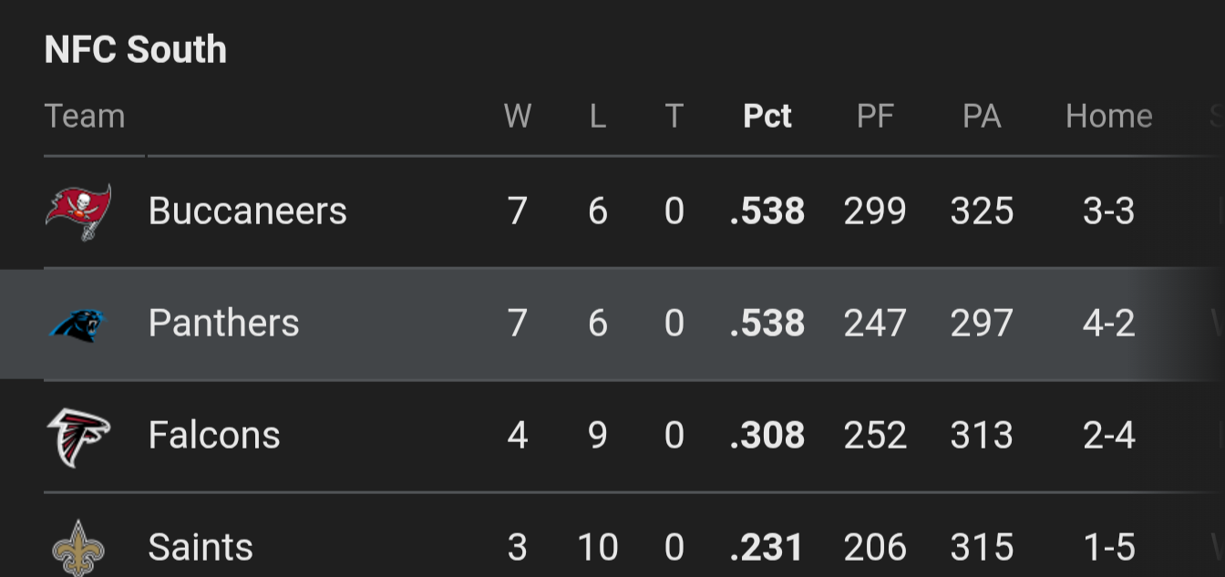 Panthers are pretty much in win or done for the rest of the season, the Bucs remaining schedule not including the two games with us is laughably easy.