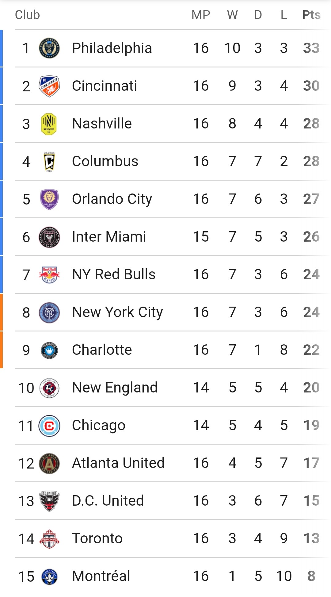 Getting just a little too close to the 10th place cut off line as the halfway point of the season approaches.