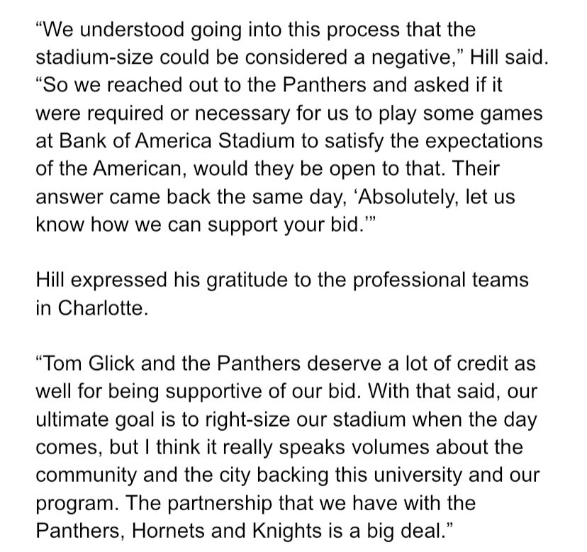 However, the Panther’s practice facility in Rock Hill is supposed to be completed in 2023. Just happens to be the rumors of when we would join the AAC. The timing works our perfectly and they would no longer need that IPF.