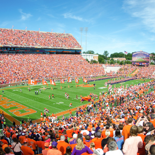We have attended many Clemson games & have had no issues getting out just make sure you park in one of the lots on the outside lots.
