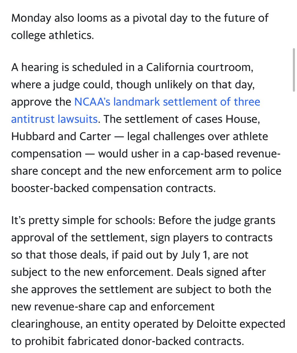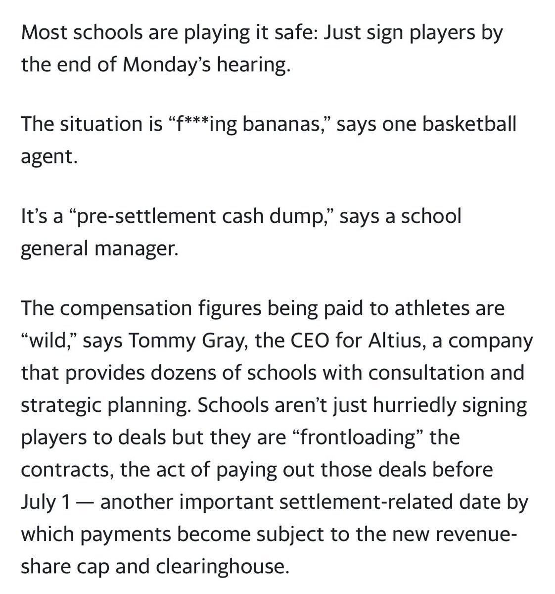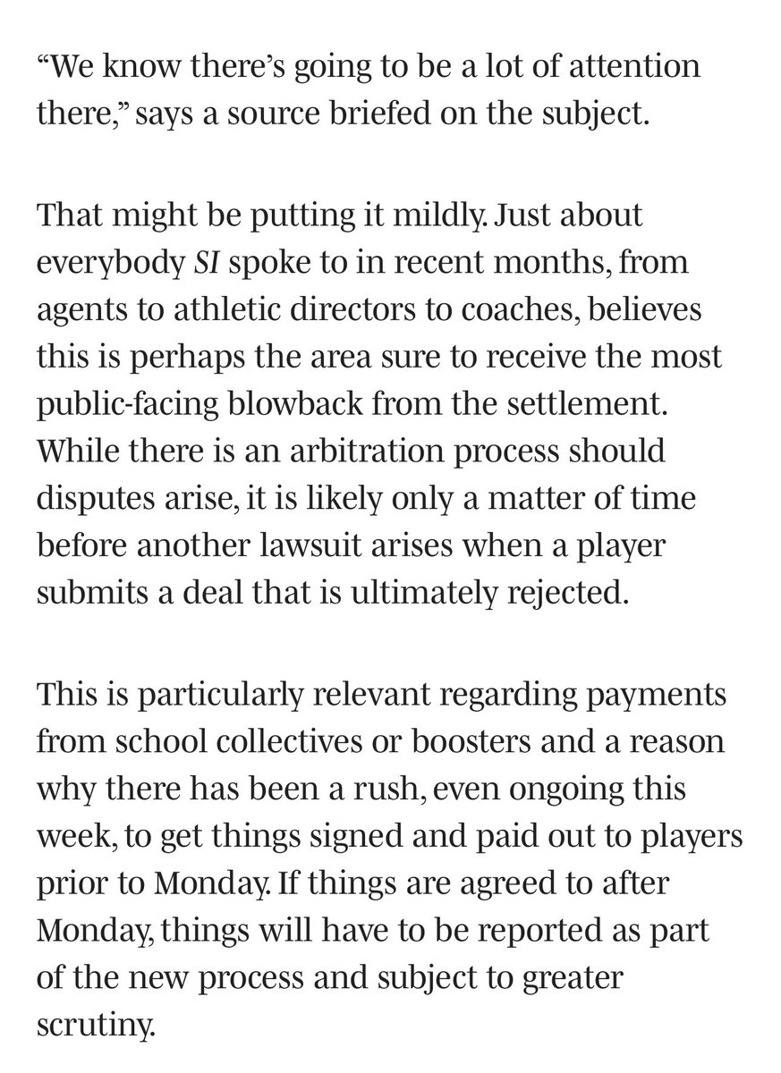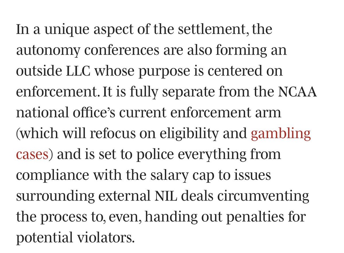 Some sort of NIL enforcement with āteethā is supposed to be a part of the House settlement - which could be ratified as early as next week - but that too is not completely certain. Everybody is OK with punishment until it happens to them!