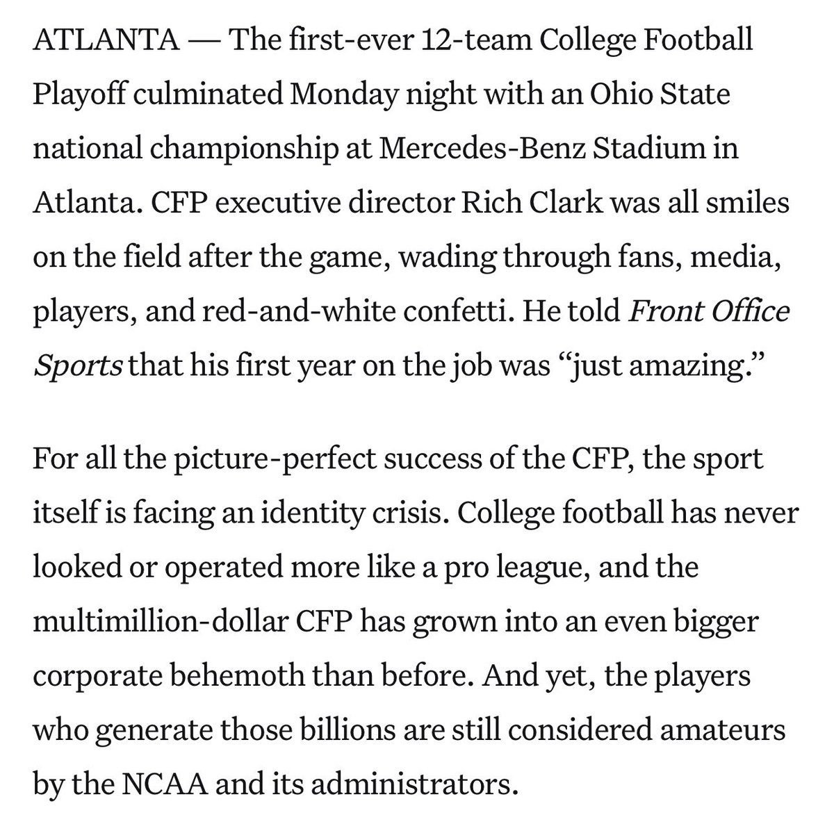 CFP not going away. Will go to 14 teams in 2026 and eventually 16. Schedule will be revised with season likely starting a week earlier in August. Can see P4 conference title games being dumped as well. Unfortunately, I can also envision the P4 eliminating G6 participation - either directly or de facto.