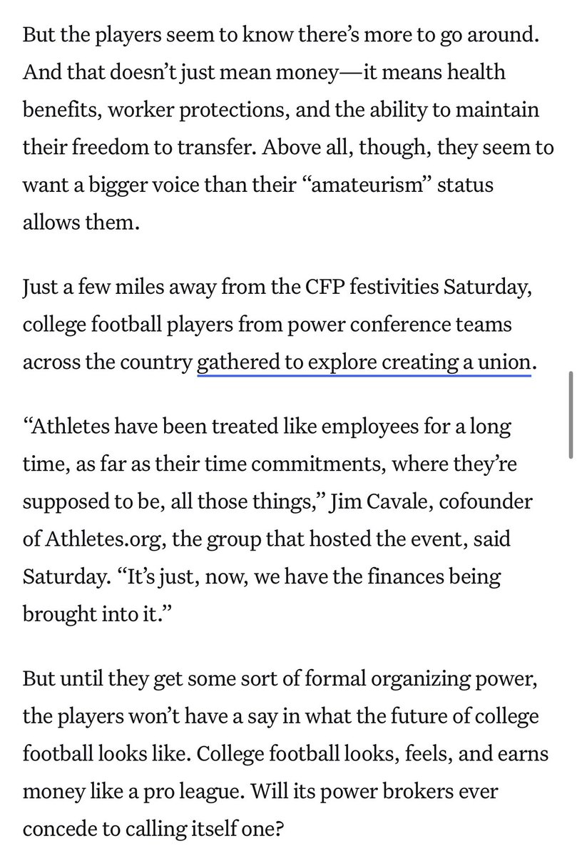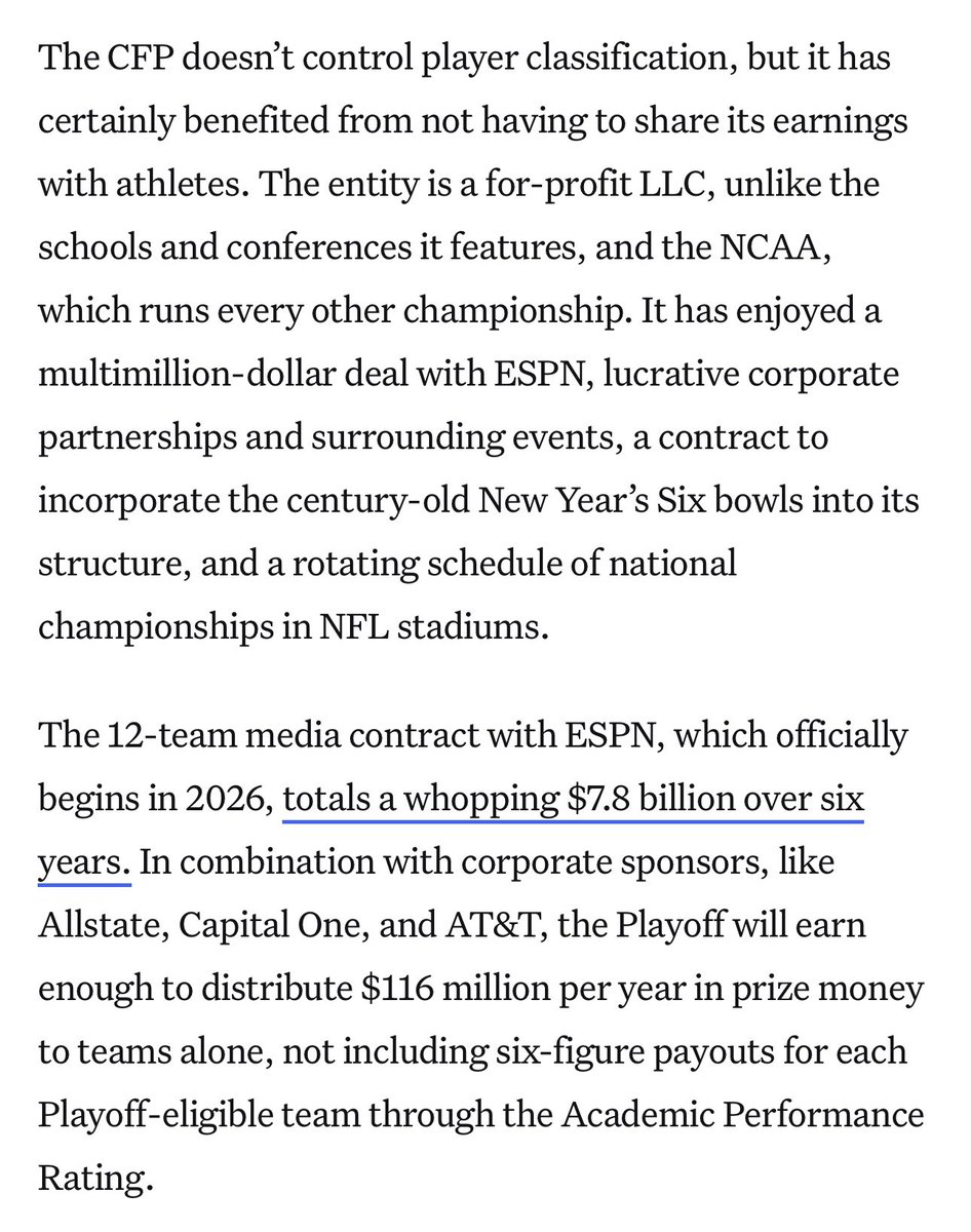 Wait till the Title IX police start to demand the same $s for womenâs sports. This whole thing will burn down.
