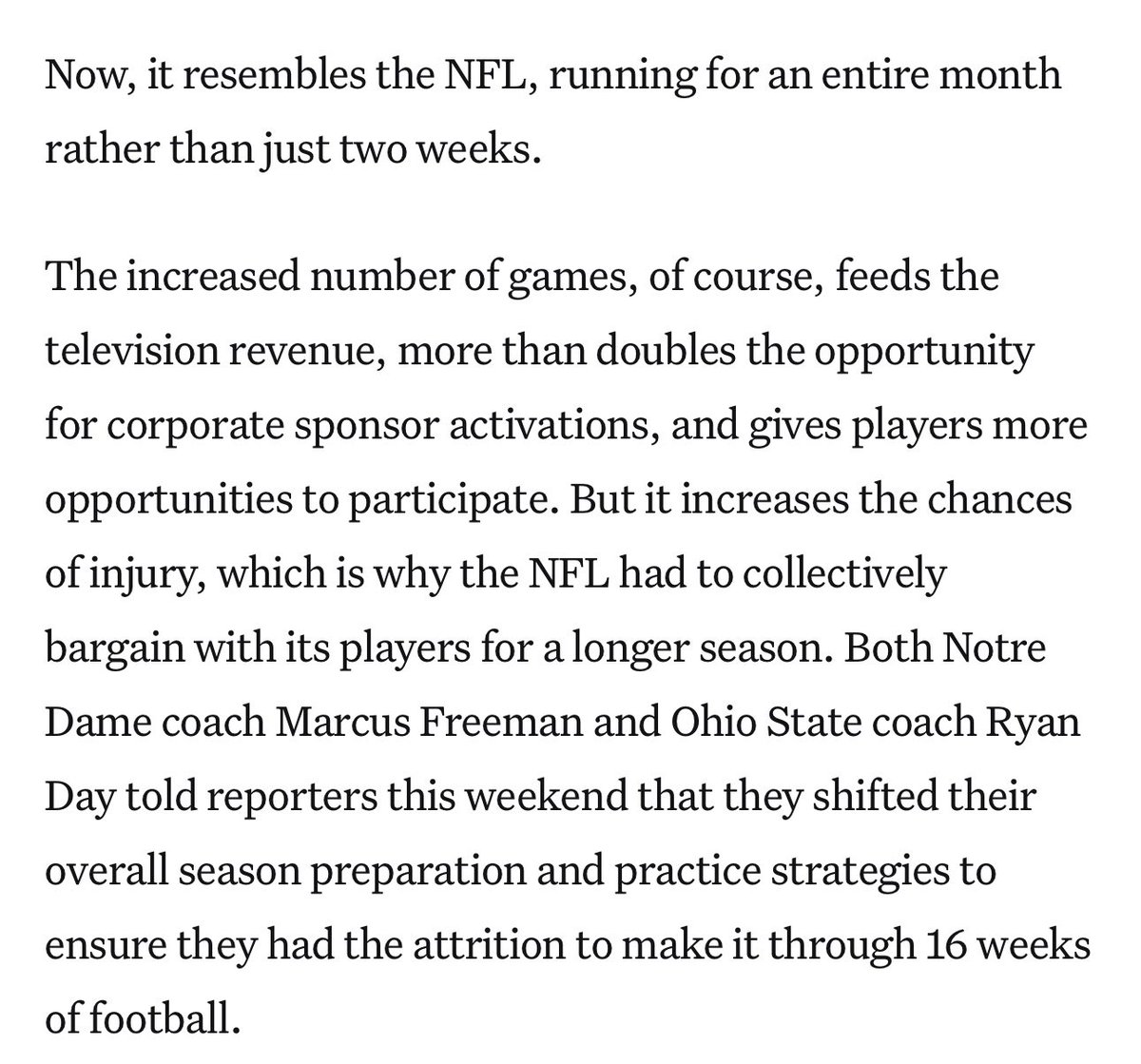 Love to see it. This is not college football anymore and people are not as engaged. It is literally semi-pro football branded as âcollege.â