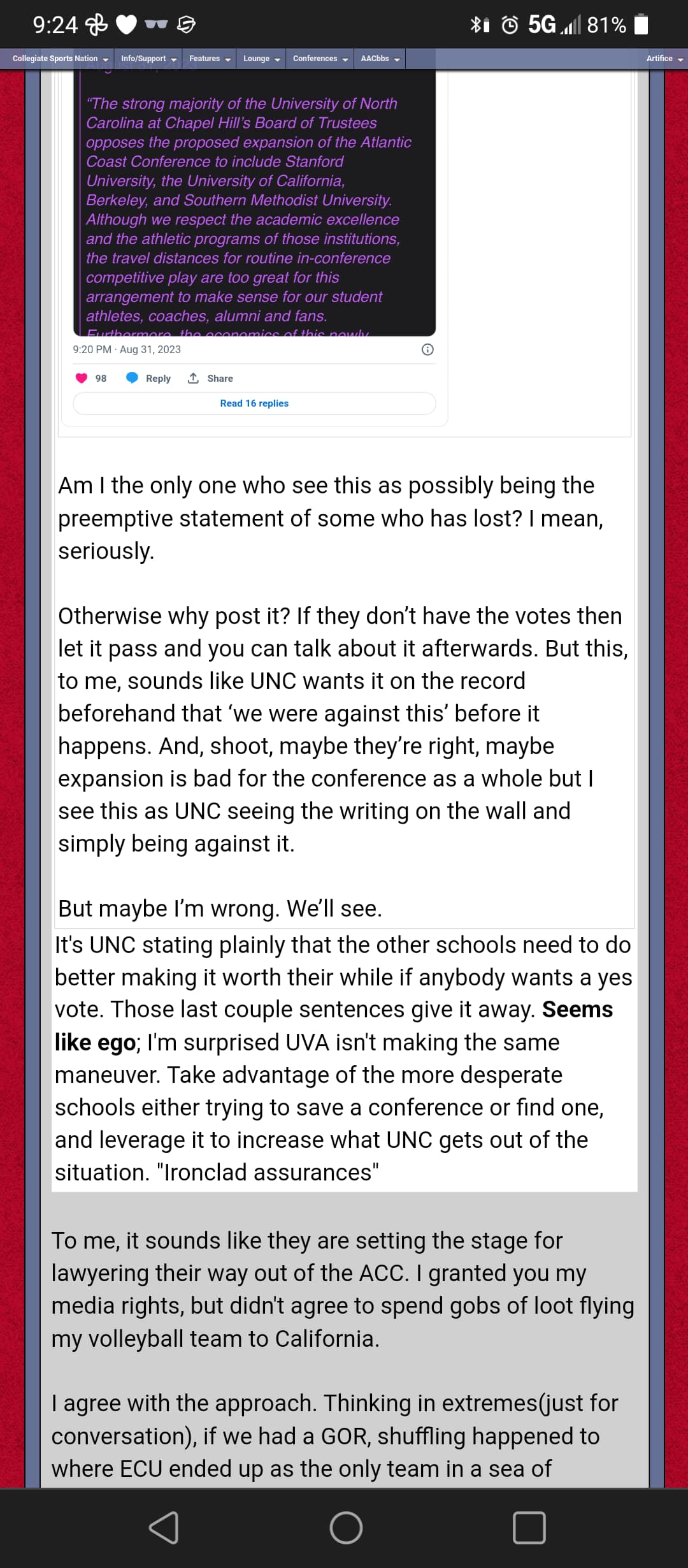 The American is no different especially if we take the PAC 2 and expand westward. I will support that or jumping to that leftovers ACC league in a second, but it would be out of a need to survive not my personal preference.