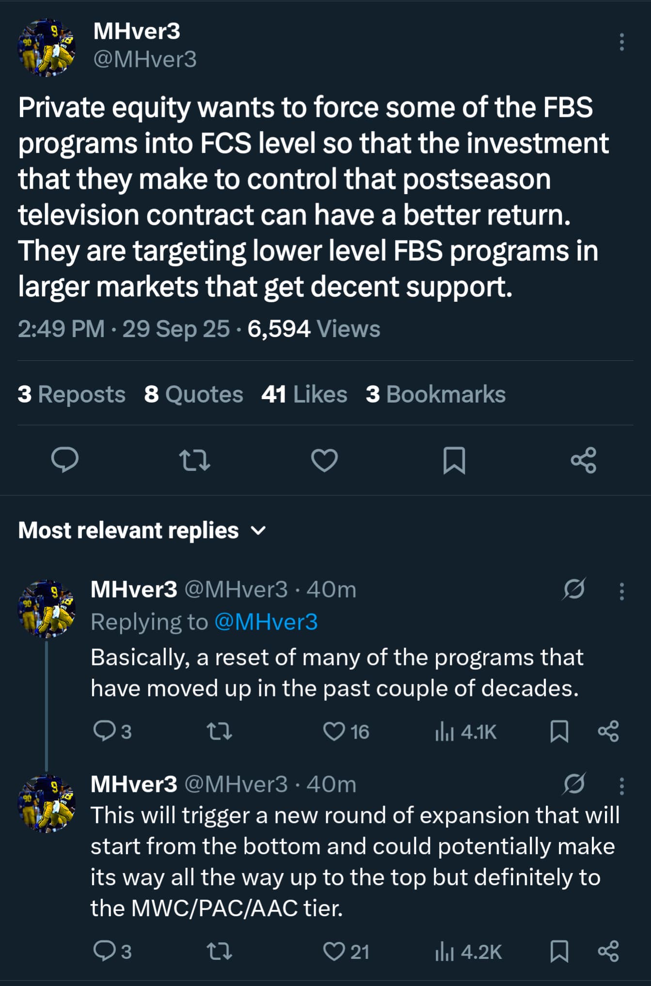 The view from Dallas and the regrouping of the private schools. Could be one of the outcomes of an accelerated NIL era.