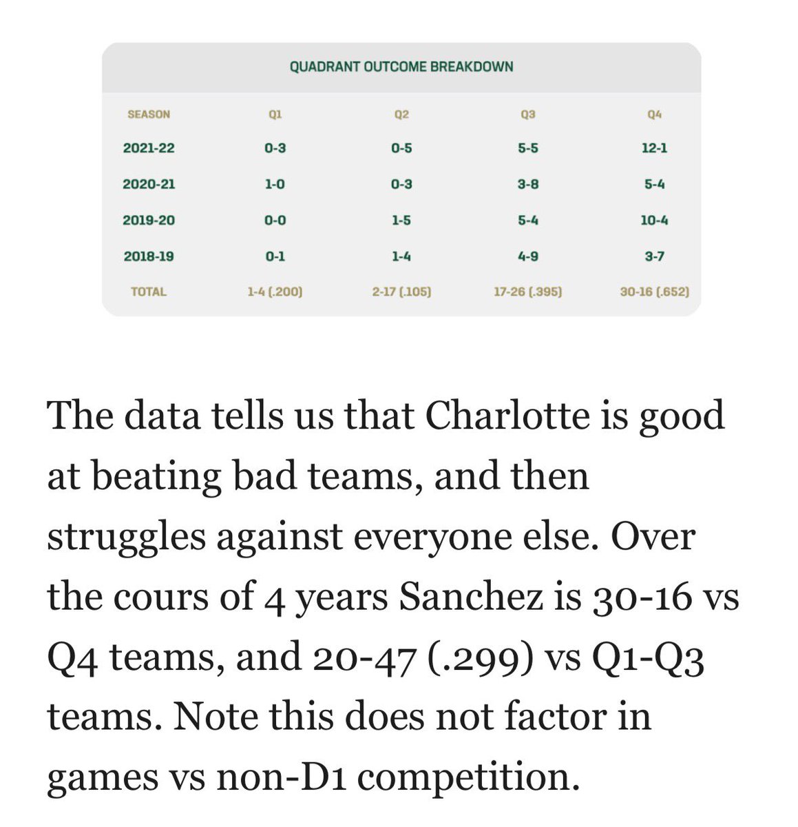 Does not factor non-D1 games likes Belmont Abbey.