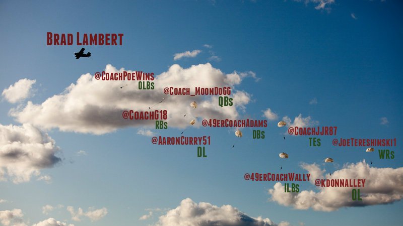 @Charlotte49erFB = Keep an eye on the roads & sky! Our coaches will be dropping by to see you soon! #stateofcharlotte