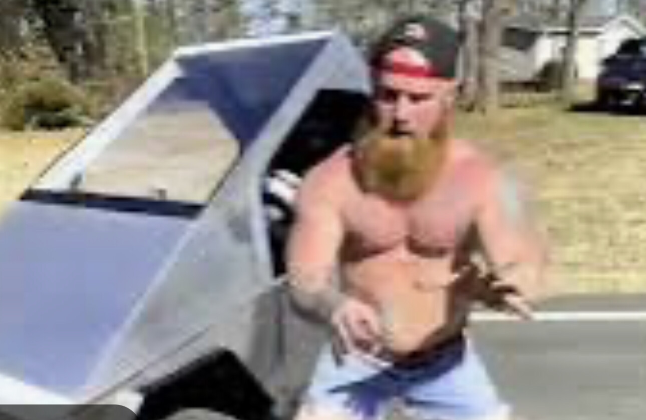 [Swear to God, I just saw this man at CLT airport heading for departure. Wonder if he got there in his cybertruck?