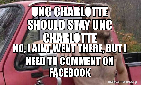 X, it’s your money so you can spend it as you wish. But I prefer to support the University and the Athletic Department. In my opinion, supporting the University itself and its programs makes us stronger and more powerful. There is a lot about our school that makes it unique and distinctive. There are many good colleges within our University. Hopefully more people will see our side and make a name change easier. When asked, I usually tell people that I graduated from Charlotte. I’m 68, hopefully in my lifetime I’ll see the name changed to The University of Charlotte!